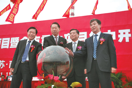 南通网讯 11月15日上午,江苏南通电厂“上大压小”两台100万千瓦超超临界发电机组项目暨全市重大项目集中开工仪式隆重举行。这是我市贯彻落实江苏省第十二次党代会、南通市第十一次党代会精神,推动产业转型升级的一项重大举措。省委常委、常务副省长、省委秘书长李云峰,华能集团公司总经理曹培玺,国电集团公司总经理朱永芃,市委书记丁大卫共同为江苏南通发电有限公司揭牌。市委副书记、代市长张国华主持开工仪式。 江苏南通发电有限公司由华能南通发电有限公司和南通天生港发电有限公司按50%∶50%的股比投资建设,一期工程建设两台100万千瓦国产超超临界发电机组,工程投资总额为79.8亿元,项目于今年9月获得国家发改委核准,计划于2013年全面投产,年发电量达100亿千瓦时。据两大电力公司介绍,一期工程采用国内成熟的超超临界技术,同步安装高效静电除尘、脱硫、脱硝装置,该项目是目前国内单机容量等级最高、效率最优、环保水平最高、各类设计参数均达国内领先水平的机组,具有厂用电率国内最低、国产化率全国最高等诸多特点和优势。 在江苏南通电厂“上大压小”项目开工的同时,我市一并举行全市重大项目集中开工仪式。11月15日-20日,全市共有140个重大项目相继开工,总投资921.7亿元。其中,工业项目86个,服务业项目29个,民生幸福项目25个。这些项目的建设和投产,对我市产业转型升级、公共事业发展将起到重要推动作用。 李云峰代表江苏省委、省政府,对项目开工表示热烈祝贺,向长期以来支持江苏、南通发展的华能集团、国电集团表示衷心感谢。李云峰指出,转型升级工程是我省八项工程中位列首项、关系全局的重大工程,重大项目建设则对加快经济转型升级具有引领带动和重要的基础支撑作用。他希望省有关部门和南通市大力支持重大项目建设,主动提供优质高效服务,积极帮助解决矛盾和问题,努力为项目顺利实施创造良好条件。他说,随着一批重大项目的成功实施,必将有力助推南通市抢抓江苏沿海开发和长三角一体化发展两大战略机遇,加快转变经济发展方式,加快建成长三角北翼经济中心,为全省两个率先作出新的更大贡献。 丁大卫在致辞中说,江苏南通电厂“上大压小”项目,是国家应对缺电形势启动核准的首批项目之一,开创了华能和国电两大电力公司合作建设大型电源点的先河。项目建成后,不仅有效提升电厂的大容量机组比例,同时使南通电力装机容量一举跃上800万千瓦平台,为南通打造长三角北翼现代能源基地提供了重要支撑。项目通过“上大压小”,对优化国家电源结构、促进节能减排、实现清洁发展,具有积极意义。他要求全市各级、各部门全力以赴为项目建设保驾护航,推动项目快建设、快投产、快见效,早日发挥大项目的示范带动效应。 市领导陈斌、黄利金、陈照煌、黄巍东、徐辉,市政府秘书长顾诺之等参加了相关活动。